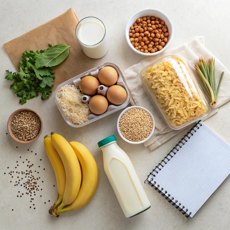 Make a big batch of oatmeal or pancakes and store in the fridge. Reheat and go.🛒 Most breakfast ingredients can be reused across meals — like eggs, oats, and bread.